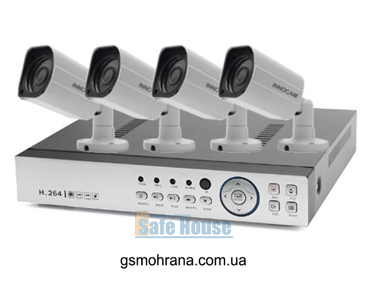 Готовый комплект Mega-AHD видеонаблюдения 4МП класса LUX INNOTRONIK AK04S-W170/O400 на 4 цилиндрические MEGA-камеры O400 (Metal) с матрицами SONY, разрешением 4Mp (2560*1440p) с сенсорами движения в пыле/влагозащищенных корпусах из антикоррозийного металла для внутреннего и наружного применения. И гибридного 4-х канального (4 видео + 4 аудио) видеорегистратора AK04S серии PRO.
