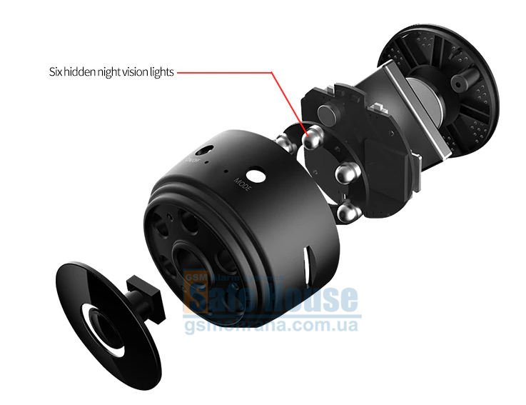 Ночное видение осуществляется с помощью 6 инфракрасных светодиодов, что позволяет получать четкое изображение даже при низкой освещенности. Встроенный датчик движения активирует запись, когда в помещении появляются люди или животные на расстоянии до 6 метров.