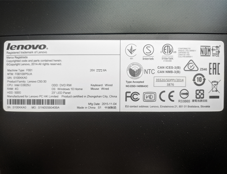 | Модель | Lenovo C50-30 (F0B100P5UA) All-in-One |