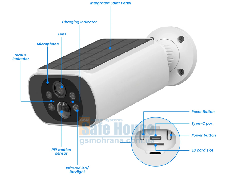 - Конструкция «All-in-One» – встроенная солнечная панель и аккумулятор избавляют от лишних проводов.