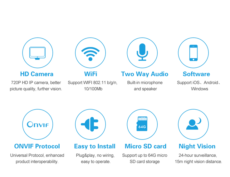 Вести круглосуточное видеонаблюдение с Wi-Fi Smart IP камеры C42 можно просматривая ее, как через ПК, так и через смартфон или планшет с возможностью удаленного управления. Поддержка ONVIF протокола позволяет подключить IP камеру C42 к NVR видеорегистратору и несколькими подобными IP камерами можно сформировать полноценную домашнюю систему видеонаблюдения.