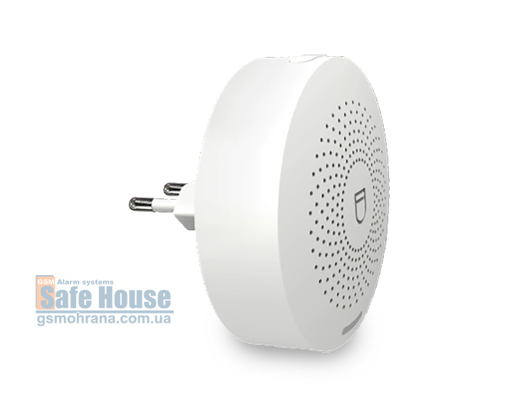 Данная Smart сигнализация со встроенной сиреной и голосовыми подсказками очень компактного размера диаметром всего 79 мм, которая вставляется прямо в электрическую розетку. Такое конструктивное решение этого девайса полностью избавляет нас от каких-либо проводов, даже кабеля подключения к электросети. Современный и элегантный дизайн Network сигнализации очень удобный т.к. хаб можно включить в любую наиболее подходящую розетку. При этом хаб сигнализации в интерьере будет абсолютно незаметен. Для удобства пользования WIFI Smart сигнализация Tuya Network SH-009W имеет многоцветный индикатор, который отображает текущий режим системы определенным цветом и частотой мигания.