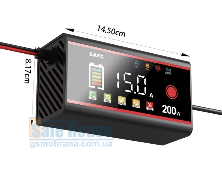 Интеллектуальное зарядное устройство EAFC H-15E для аккумуляторов LiFePO4 / AGM / GEL (12-24В)